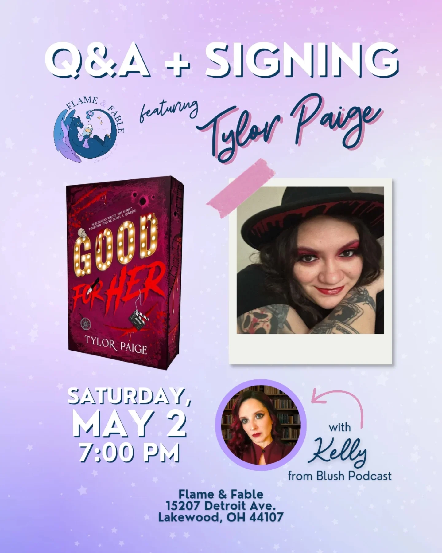 Join Flame & Fable on Saturday, May 2 as we host horror romance author Tylor Paige in conversation with Kelly from Blush Podcast for a Q&A event and book signing!